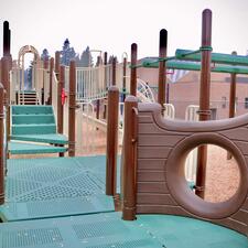 Universally designed playground spaces include adventure-style playground equipment that is designed to include all elementary-aged students regardless of ability. École Centennial Park's new playground features an accessible merry-go-round, a wide ramp to the main play structure for wheelchair accessibility and much more!
