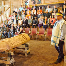 Raphael Silver, the Semá:th First Nation artist behind the carving of the house posts, spoke to the audience about the process of this project and his long connection to the Abbotsford School District.
