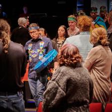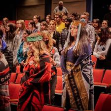 On April 27, 2022, at Abbotsford Arts Centre, the Mamele’awt Community Indigenous Education Centre honoured the 2022 Indigenous Role Models. Before entering, Role Models were covered with a blanket as a way of claiming the students, giving them a warm hug, and helping them on their journey forward, along with a headband to remind them to have good thoughts and a good mind. Chris Silver, Councillor of Semá:th First Nation began the Ceremony with a welcoming song and explained the importance of the Ceremony. Mr. Perry Smith, Director of Curriculum, was the traditional speaker and further explained the meaning of the day and how protocols are in place to ensure the Ceremony is done well, with a good heart and a good mind. Students were brought in by Tyrone Thomas, Jessi Old Coyote, and Tlatsemot leading in an honouring song as the students were brought forward into the space. Each student was honoured on stage by either their Indigenous Support Worker or Teacher for Indigenous Success, who expressed each student's hard work, dedication to culture, and future goals which brought them to be honoured as Role Models. The day was filled with gratitude and inspiration as we celebrate these students' accomplishments. The Honouring Ceremony was live-streamed and can be viewed on the Abbotsford School District YouTube page.