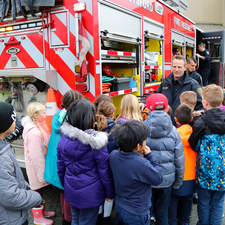 Fire prevention starts at an early age. Bringing the firefighters and the fire trucks to the school for students to see and learn firsthand was an exciting time, for all involved. Fire personnel spoke to the students about fire prevention and toured students around the fire engine and rescue truck to see the different types of equipment used for firefighting. Through this hands-on experience, students were able to learn key safety messages from local firefighters, look around the fire engines and sit inside.