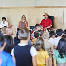 On September 20, 2022, the Abbotsford Board of Education hosted the official grand opening event of Irene Kelleher Totí:ltawtxw, the newest elementary school in the Abbotsford School District. Over 100 guests - including school trustees, government officials, district staff, students, and various community members - were in attendance to commemorate this exciting day, learn more about the building process and the history of the school's namesake, Irene Kelleher.