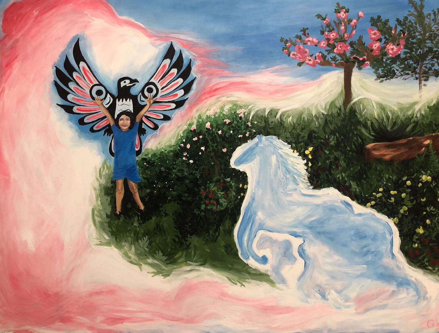 The Art Activism Project - titled Lex̱éywa, meaning “Torch” in Halq’eméylem - calls us to consider the history and impact of residential schools on a national level, as well as on a local scale. This art project visually narrates the life story of Bea Silver; a prominent Elder, educator, leader, and residential school survivor. Twenty large-scale paintings have been paired with audio recordings that relay Bea Silver's story chronologically, uncovering an individual experience that speaks to the lasting impact of residential schools, as well as universal truths, struggles and ultimately, the resilience of one exceptionally strong survivor of this history we all share.