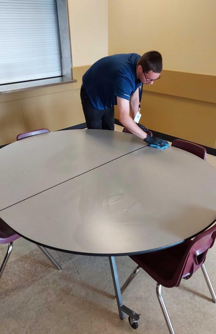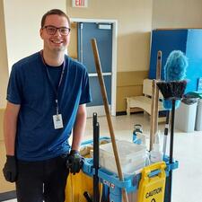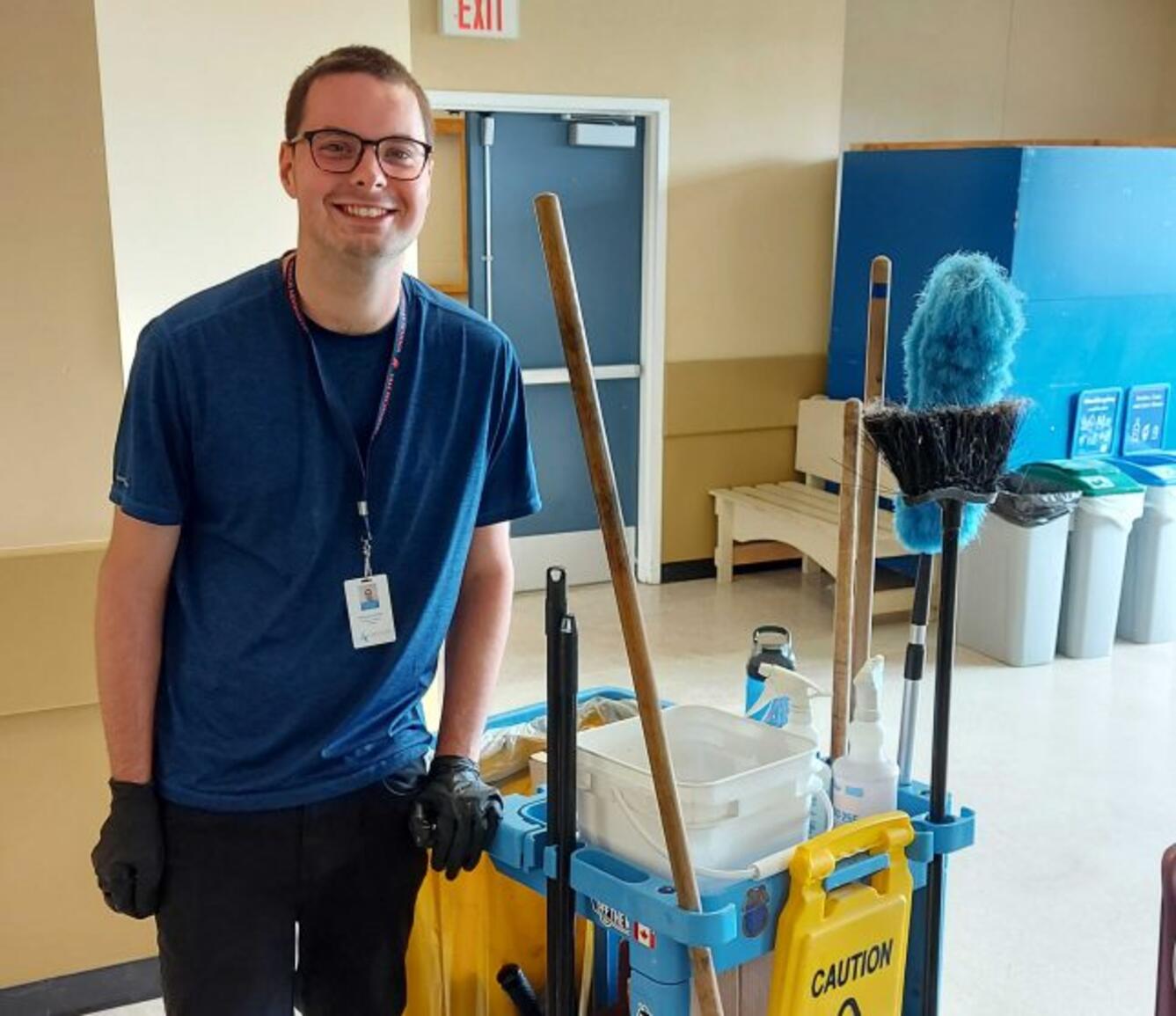 “My favourite task is dry-mopping,” he says. “I like to make sure there is no dirt in a classroom. I know I’m successful when I can see no dirt anywhere and my co-worker says I’ve done a good job.”