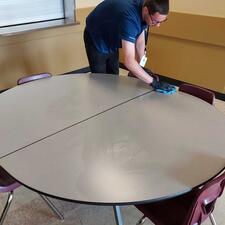 Michael works in Custodial Services for the Abbotsford School District, cleaning spaces at Yale Secondary School. He loves his job.