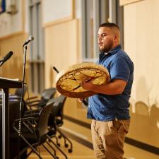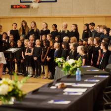 Tuesday's ceremony included a territorial welcome and song by Ronald Francis-Modeste of Mathxwí First Nation. Ardaas Sukdev Singh from Khalsa Diwan Society Abbotsford and Pastor Mitch Borrows from Hill City Church brought blessings to the event. Students from Irene Kelleher Totí:ltawtxw's Choir, led by Amanda Schoepp, performed "A Wish for Peace" and also led the room through the singing of O Canada.