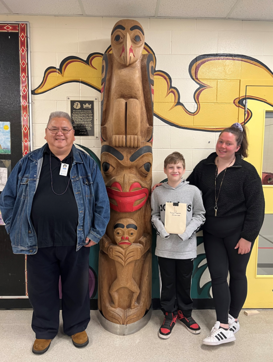 Earlier this year, the Abbotsford School District invited Indigenous students in grades K - 12 to submit a design for consideration for orange shirts that would be made available to school district staff and students through an Orange Shirt Day art contest. Led by Brian Point, an Indigenous Support Worker with the Indigenous Education department, the contest saw over 100 unique and creative entries submitted. In May 2022, the entries were finalized into two images, which are seen on orange shirts throughout the district. The awarded young artists also received a gift as a token of appreciation.