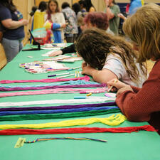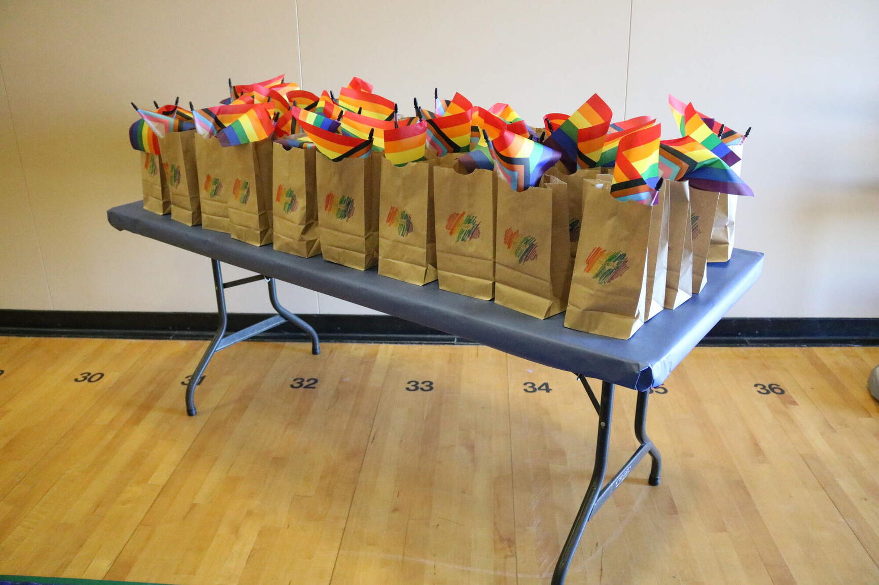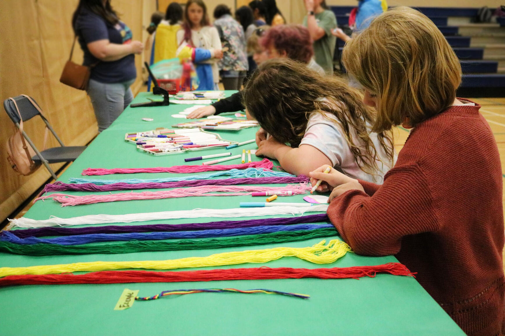 Students gathered in the gymnasium for a full day of events and were welcomed by teachers and peers who helped organize the event. Each student had the opportunity to create a name tag indicating their preferred pronouns. Using the names and pronouns that people wish to be addressed by is a small step individuals can take to build a respectful, safer and more inclusive environment for all. There were various activities for students to get involved in, including arts and crafts, creating personalized pins, tie-dye clothing, beading and a photo booth station. Spread out around the gymnasium were pictures of public figures with a connection to the LGBTQ2+ community. Students could read the biographies of these individuals and learn about their history and personal stories.