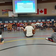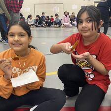 The Carnaval de Québec festivities offered a variety of engaging activities for students and their families, showcasing the vibrant traditions of the iconic winter festival. The program included a French movie night at Centennial Park, a family Carnaval event at Sandy Hill by WJ Mouat Leadership students, and the construction of a giant 'igloo' ice sculpture from milk jugs at Margaret Stenersen. School-wide Carnaval assemblies allowed students to present about the Carnaval, learn French vocabulary, enjoy Maple syrup at the Sugar Shack and perform traditional songs and skits. Fergus Dalton, a Métis jigger, educated students on jigging at various sites, highlighting the links between the French language and First Peoples communities.